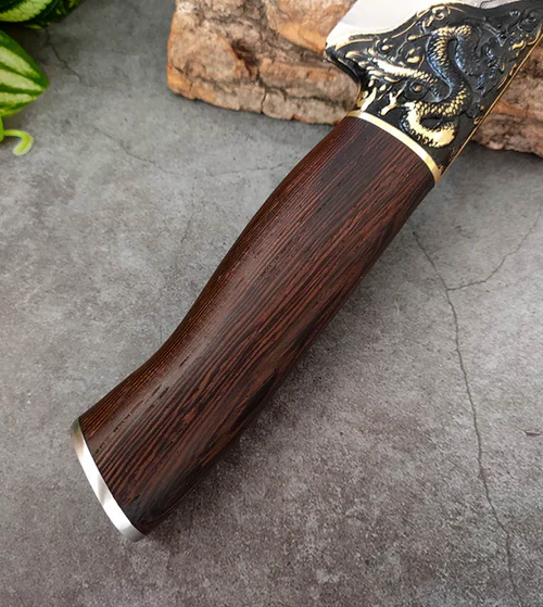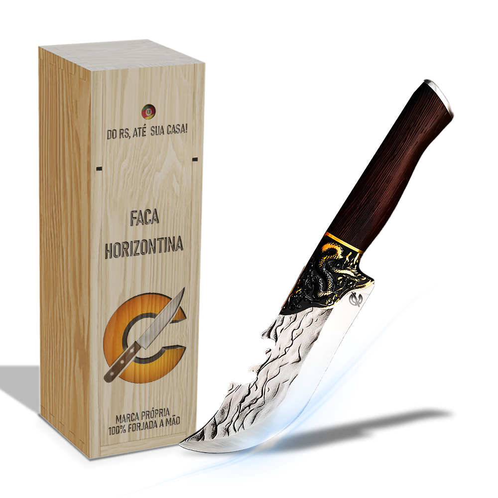 Fabricada com precisão artesanal, a Faca Dragon® é feita para quem valoriza qualidade e desempenho. Com madeira nobre e resistente em seu cabo, proporciona uma pegada firme e confortável, enquanto a lâmina de aço inox 420c premium garante um corte preciso e eficiente.