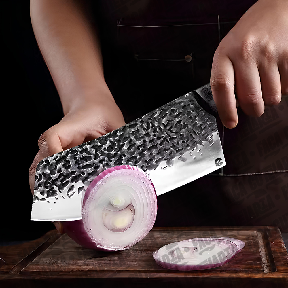 Extremamente Afiada: Sua lâmina, forjada à mão com o padrão de excelência da Faca Cutelaria™, oferece um alto grau de força, tração, dureza e resistência ao desgaste.