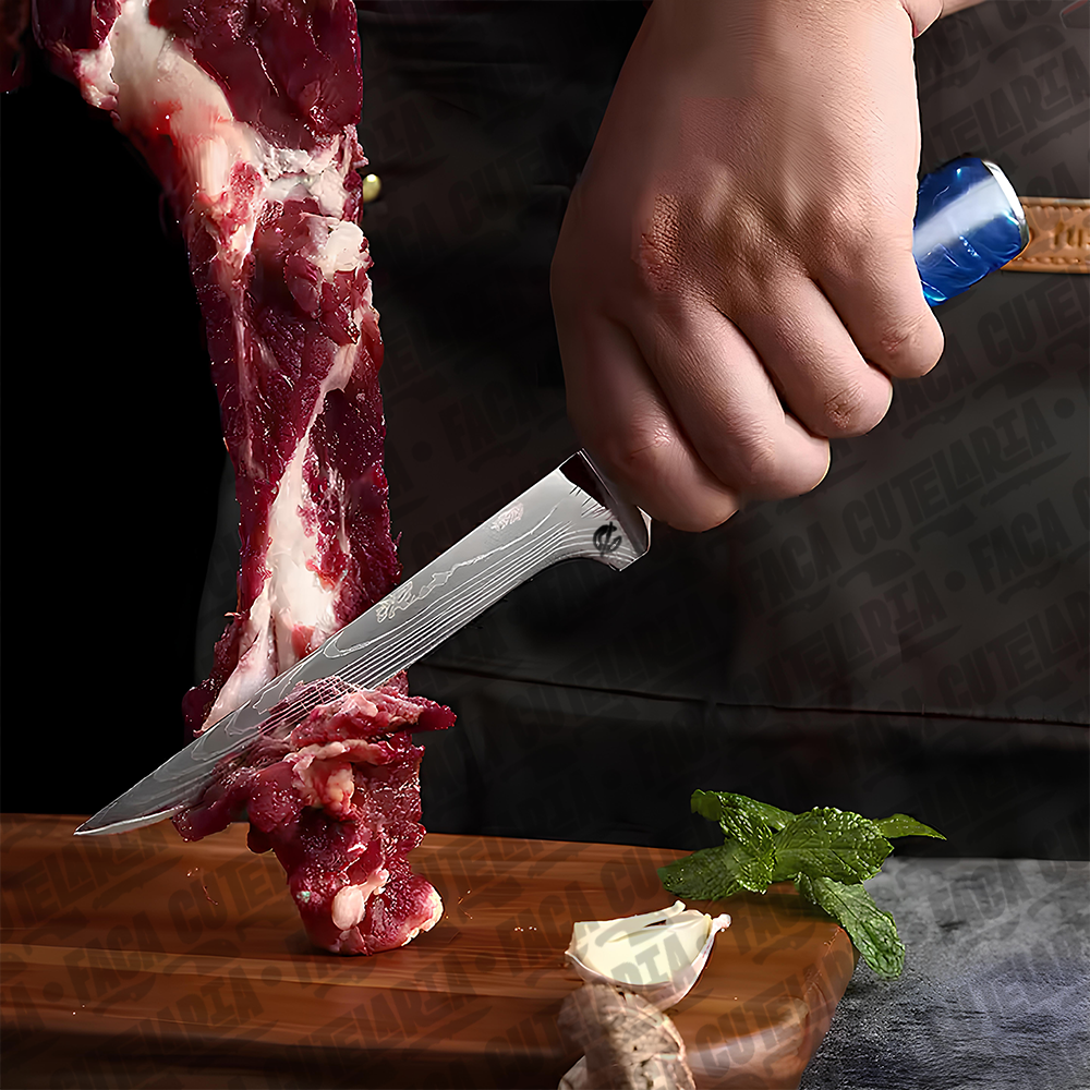 Fabricada com precisão artesanal, a Faca Blue® é feita para quem valoriza qualidade e desempenho. Com madeira nobre e resistente em seu cabo, proporciona uma pegada firme e confortável, enquanto a lâmina de aço inox 420c premium garante um corte preciso e eficiente.